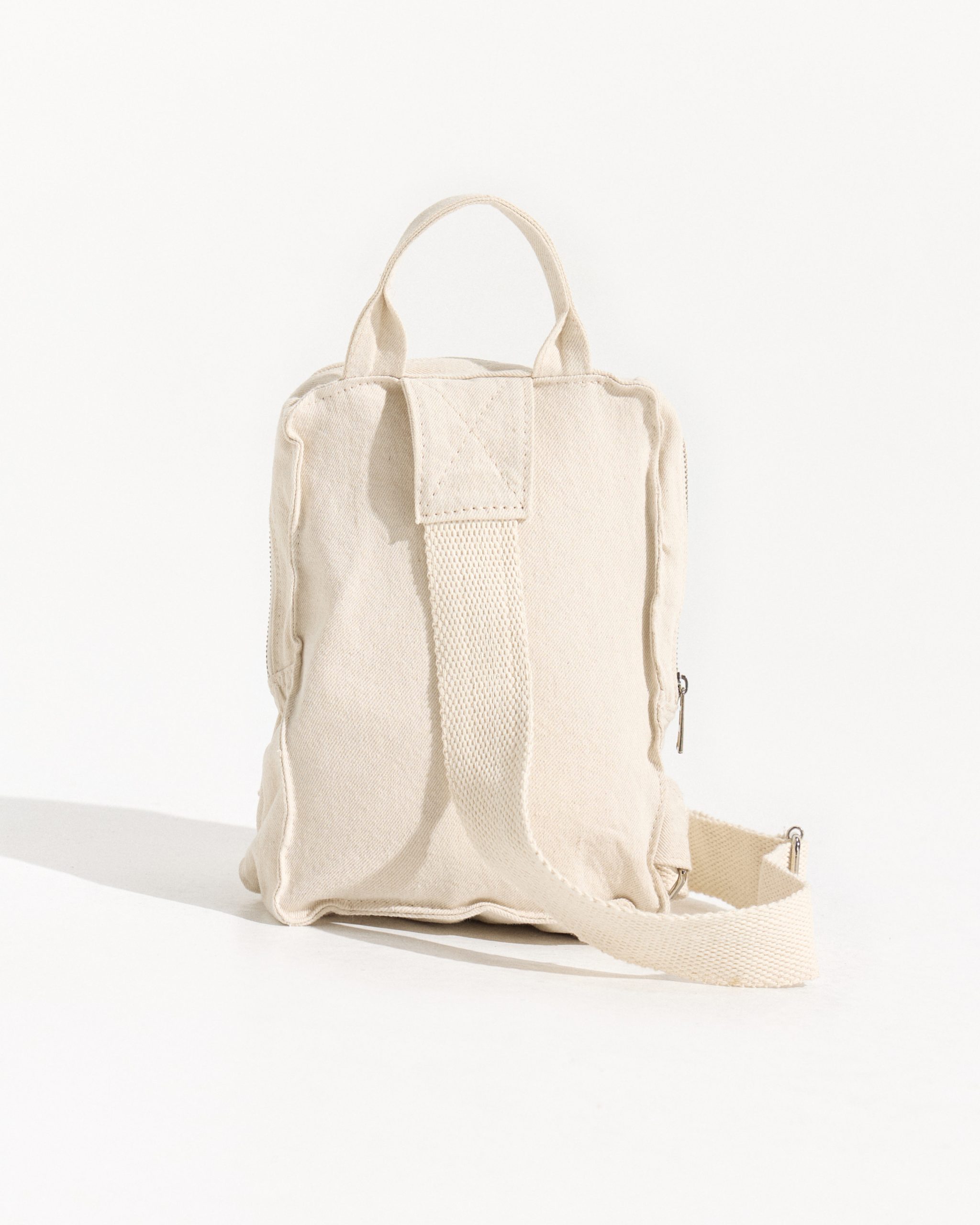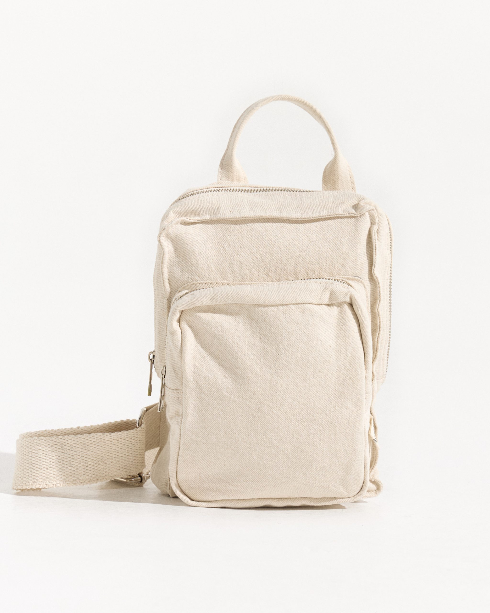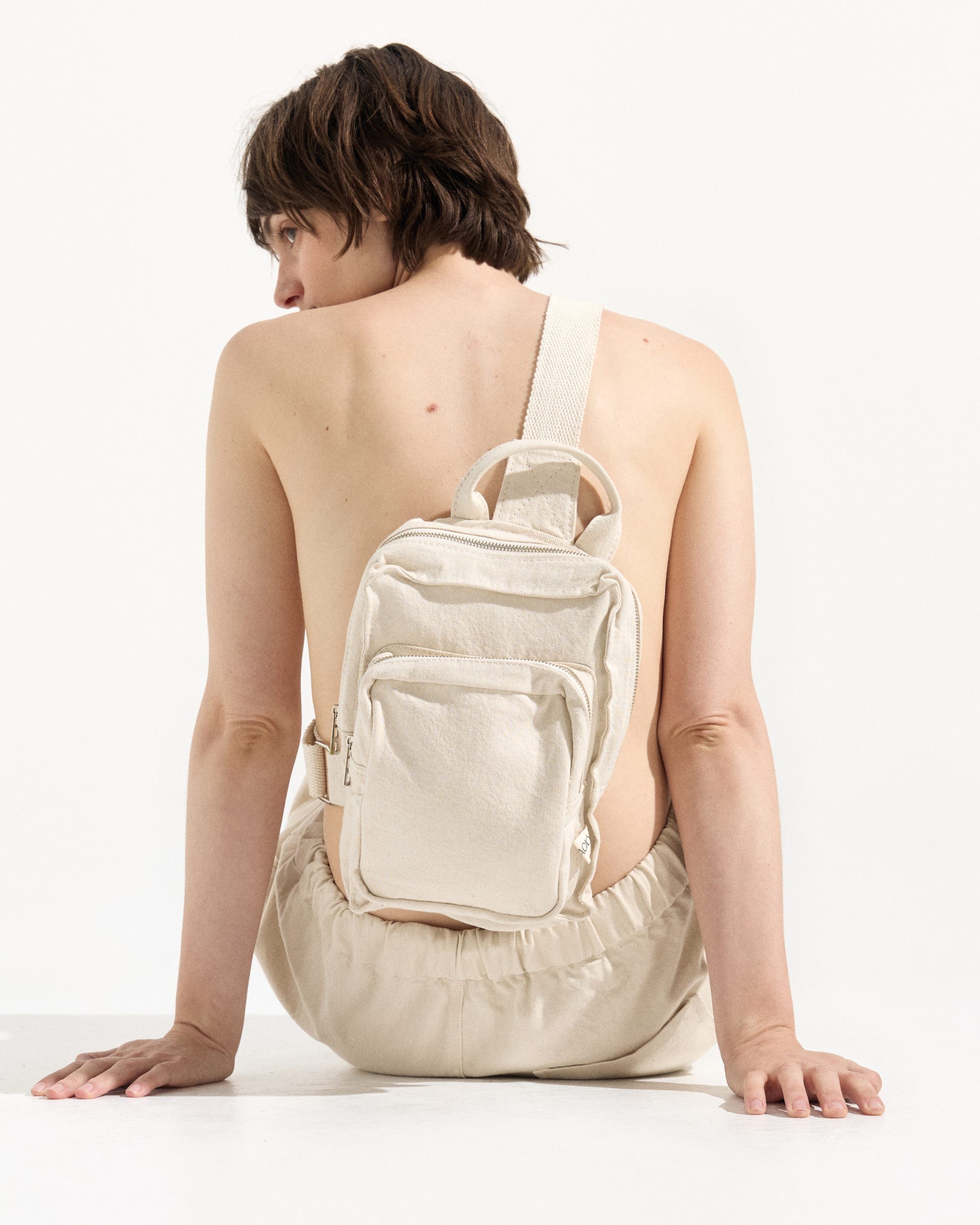 Bandolera cruda. Práctica que te deja las manos libres mientras viajas, te aventuras en excursiones cortas o vas a la playa. Acceso a través de cierre. Correa regulable. “Dimensiones: 30cm alto x 18cm ancho x 6cm profundidad”